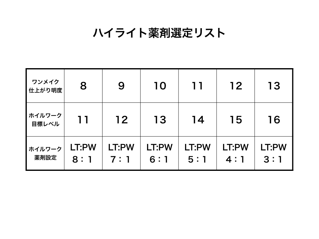 【ホイルワークの薬剤設定】