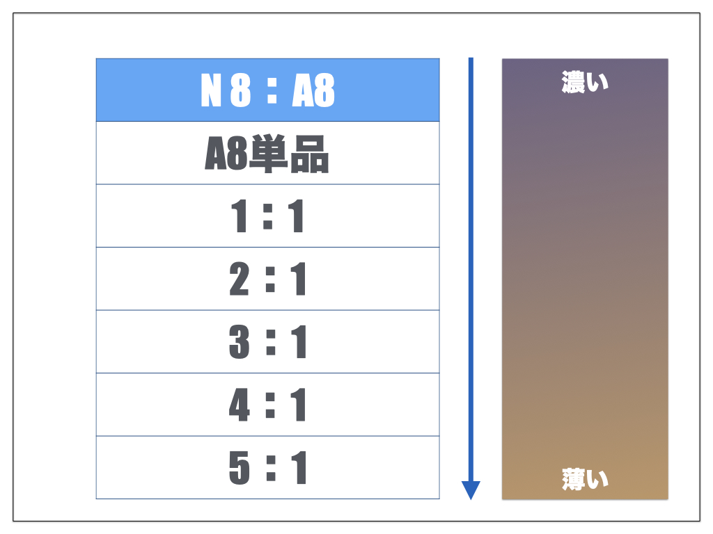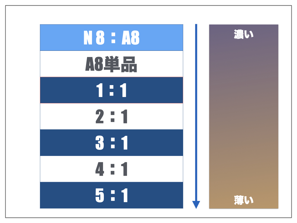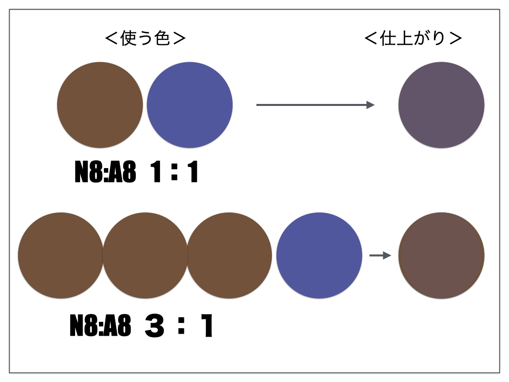 最初は色み(この場合A8)とNを混ぜるイメージからスタート!