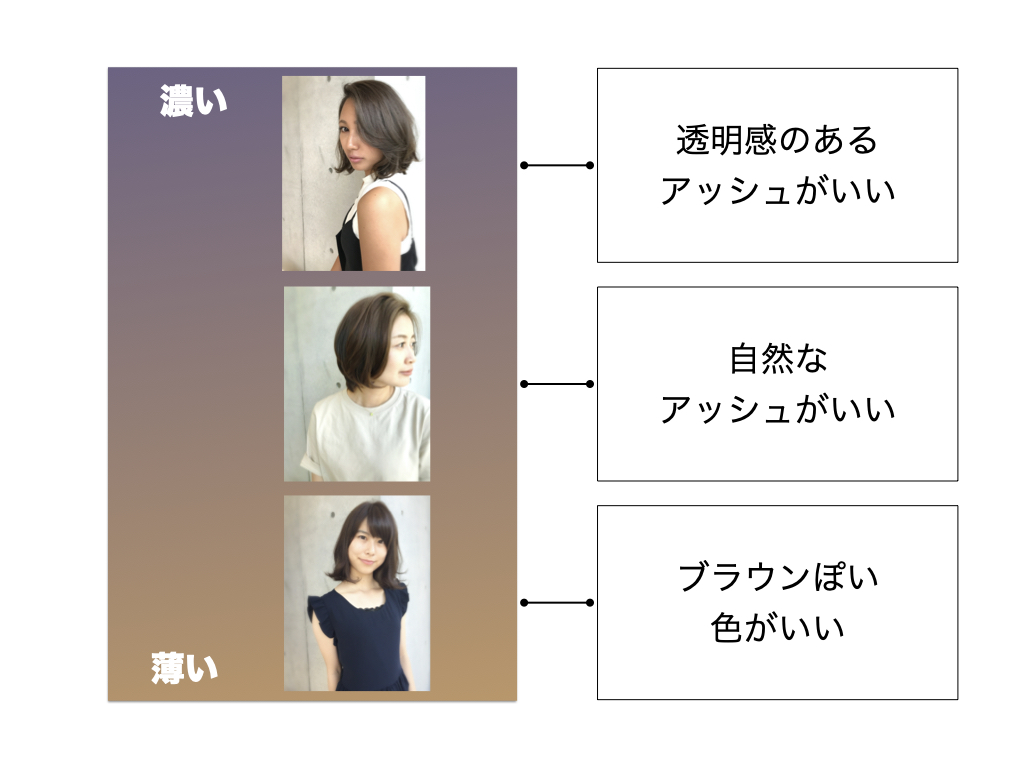 お客様・モデルさんの希望をよく聞いて、薬剤設定のイメージを膨らませましょう。
