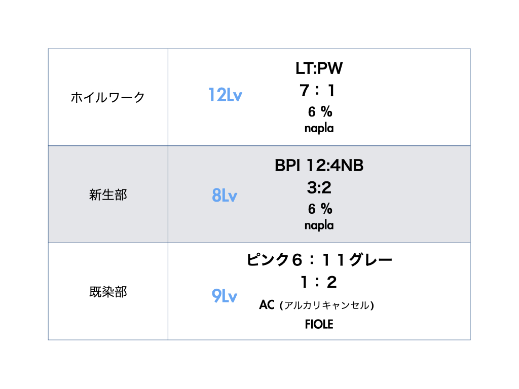 *新生部に8Lvとあるのは、根元だけ明るくならないようにするため