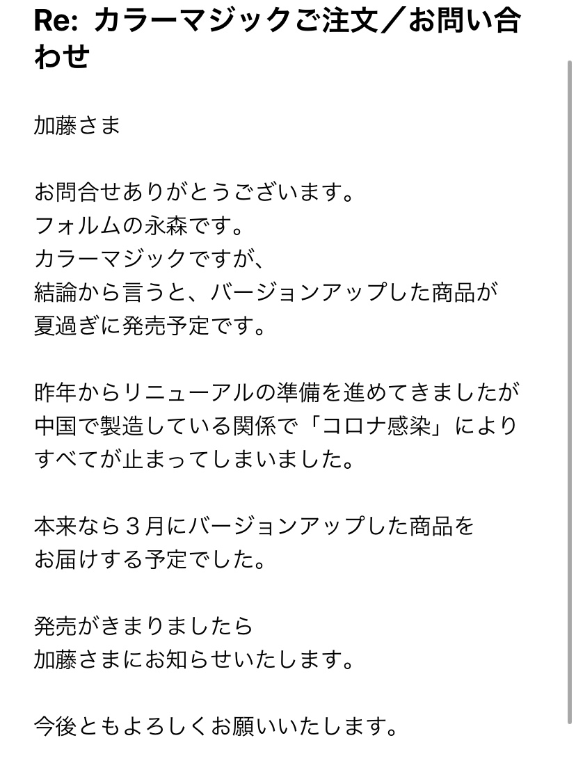 *コロナの影響で中国生産ができず発売が遅れているそう