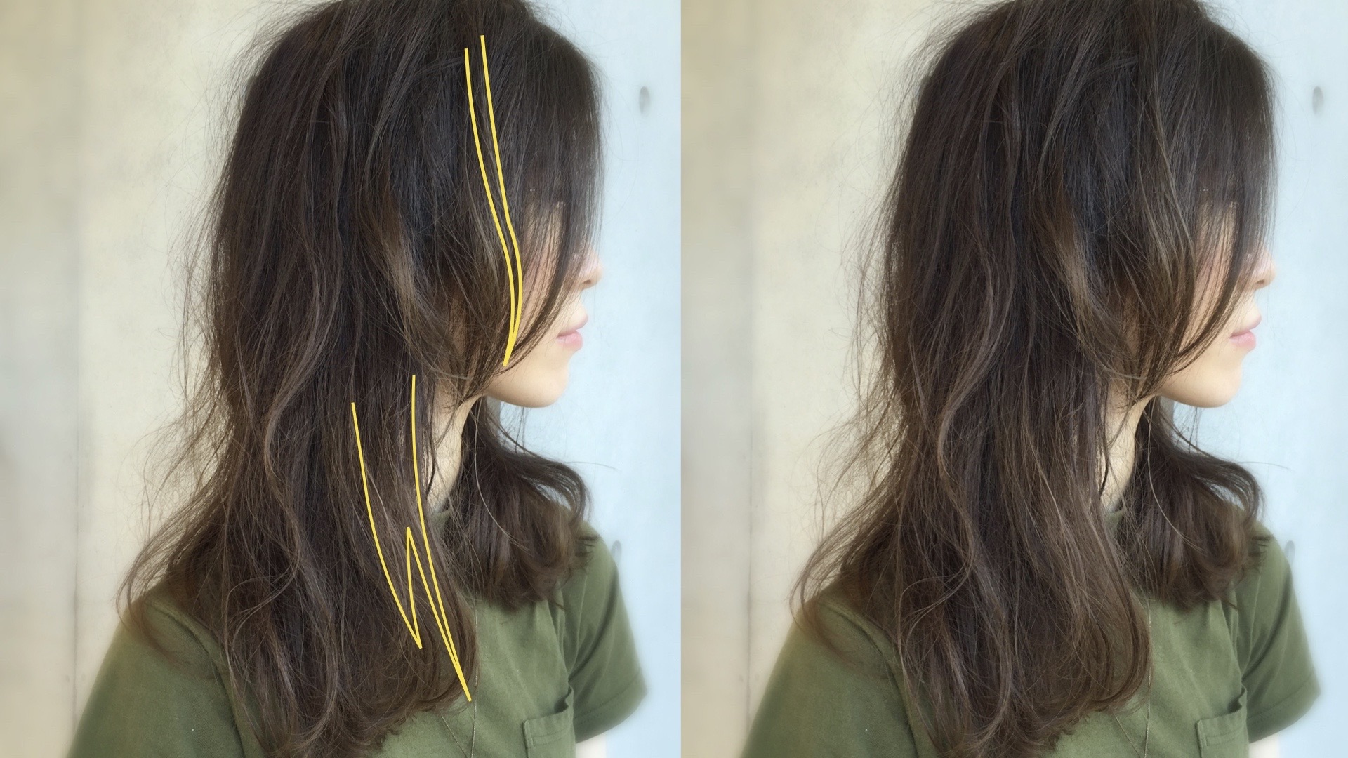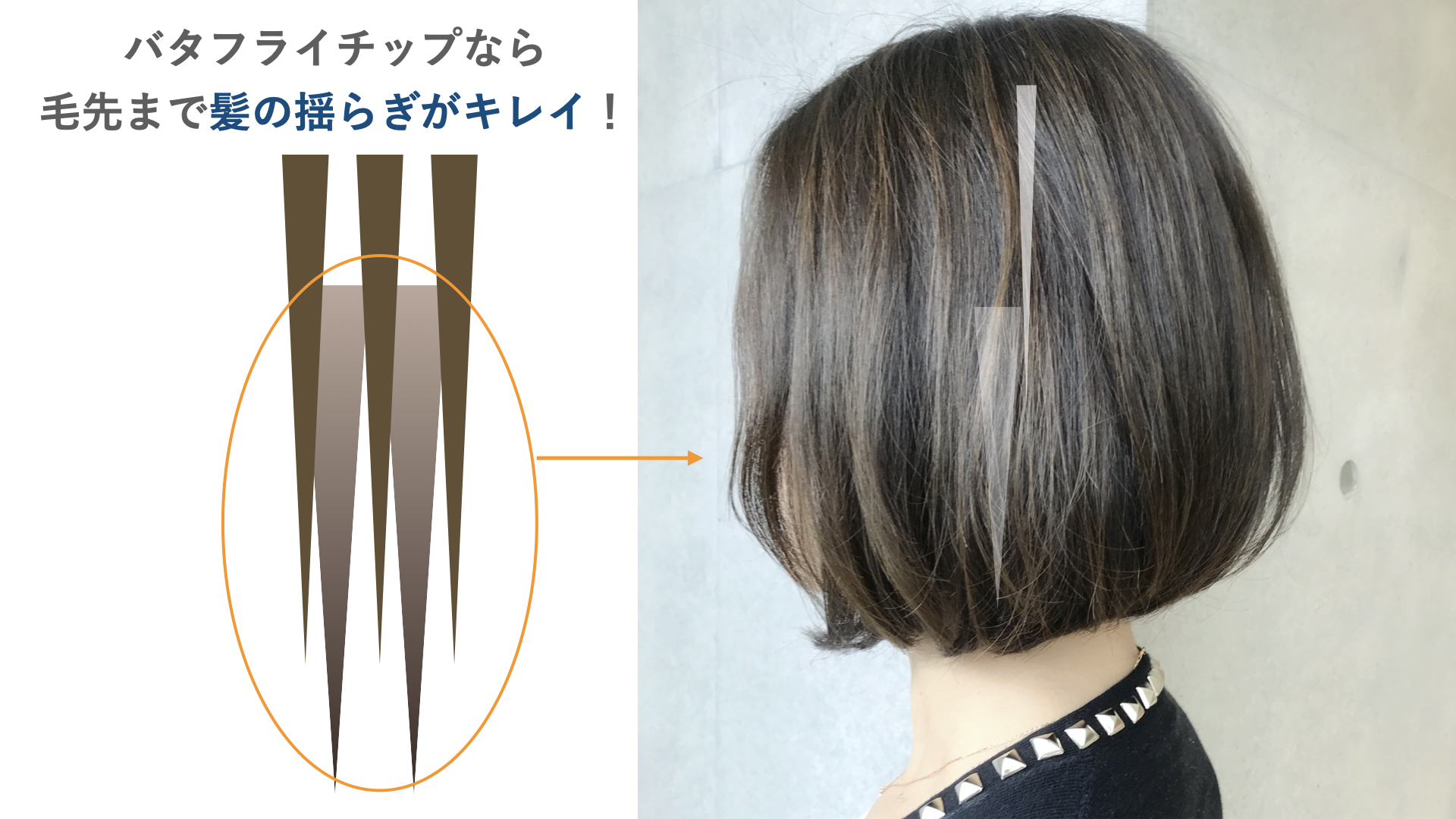 バタフライチップは中間〜毛先にだけ入れるハイライト。