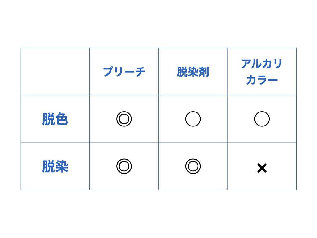 『ブリーチ』『脱染剤』『アルカリカラー』の特徴をまとめました。