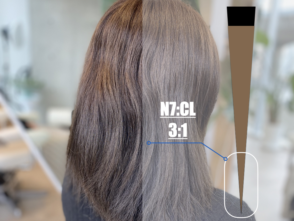 毛先の沈みそうなところにN7を使うとしたらN7:CL 3:1 の設定にしましょう。