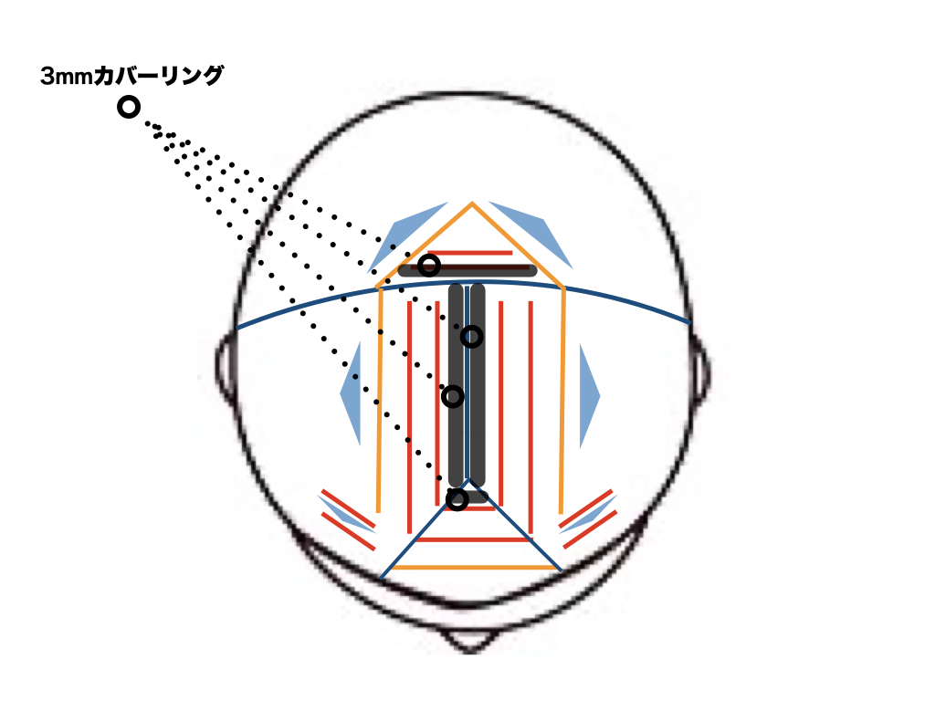4つのポイントにカバーリングを作ります。