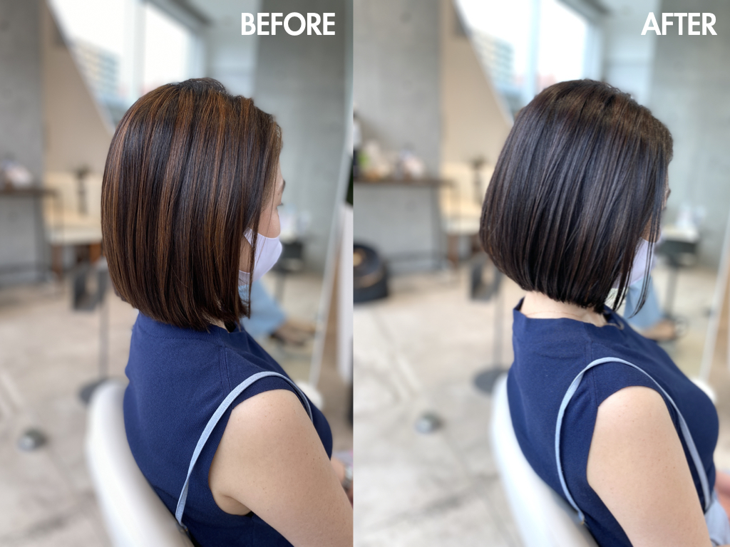 40代の大人の女性のお客様が「白髪を目立たなくしたい」と、ご希望されてハイライトを提案した。