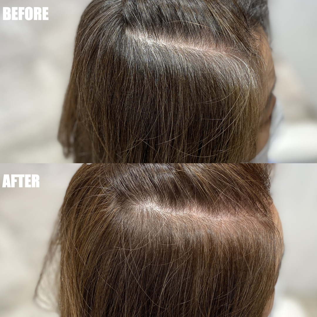 染め上がりからキレイにしっかり白髪が染まり、1ヶ月後も色抜けしません。