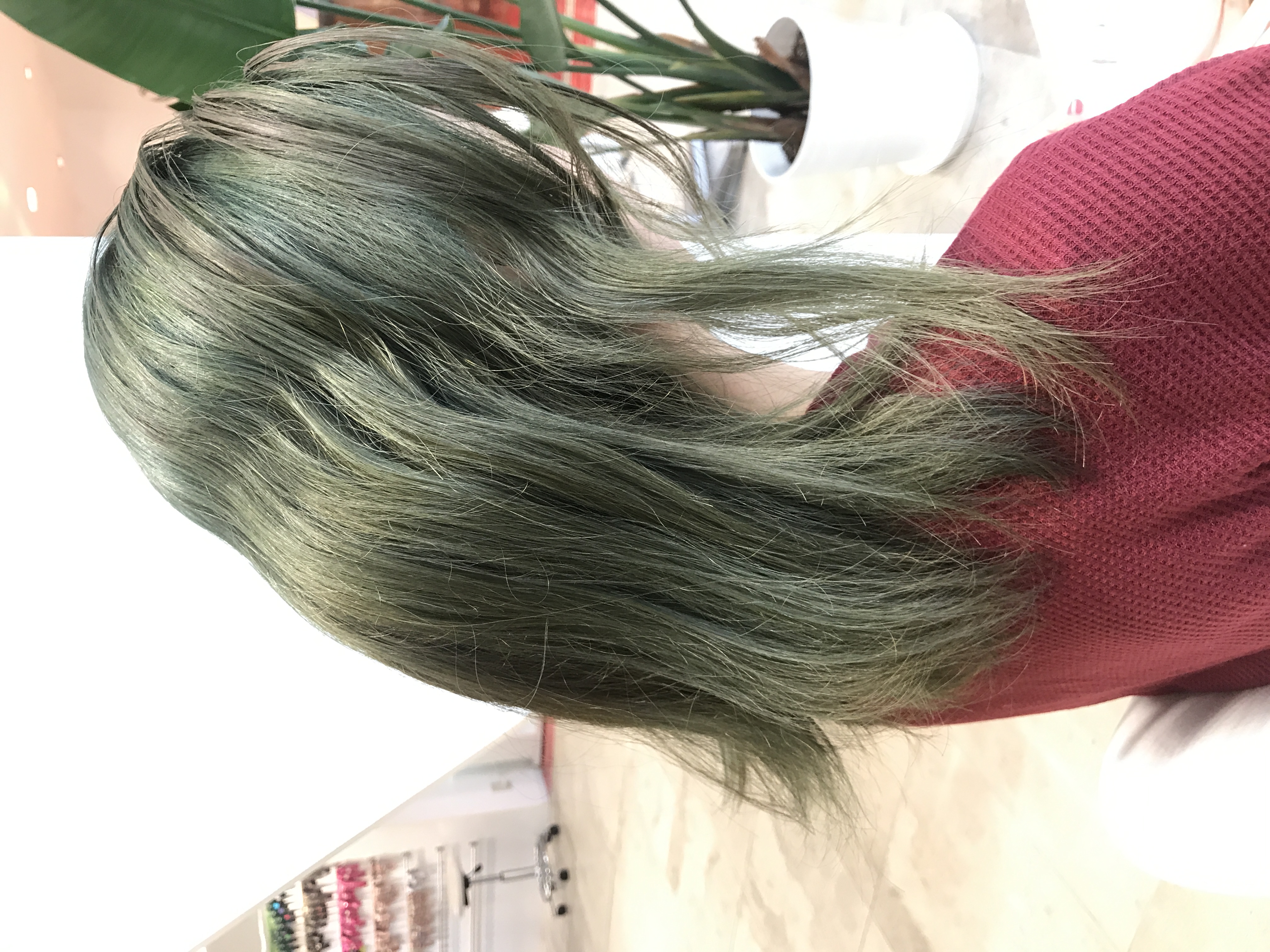 余程ダメージが進んでいる毛先でなければグリーンになるのを防げます。