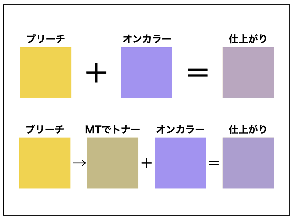 結論からお話ししますとブリーチ後の『黄みを飛ばすトナー』が重要。