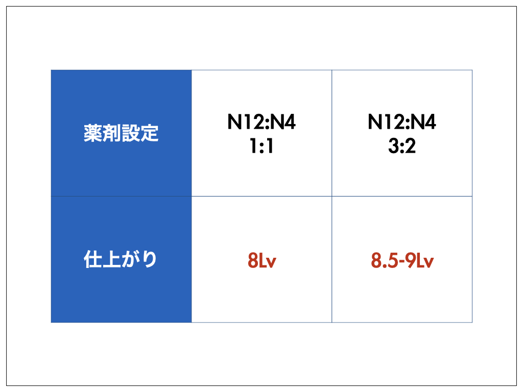 3:2以上にN4を少なくしてしまうと、白髪が染まりにくいので注意してくださいね。