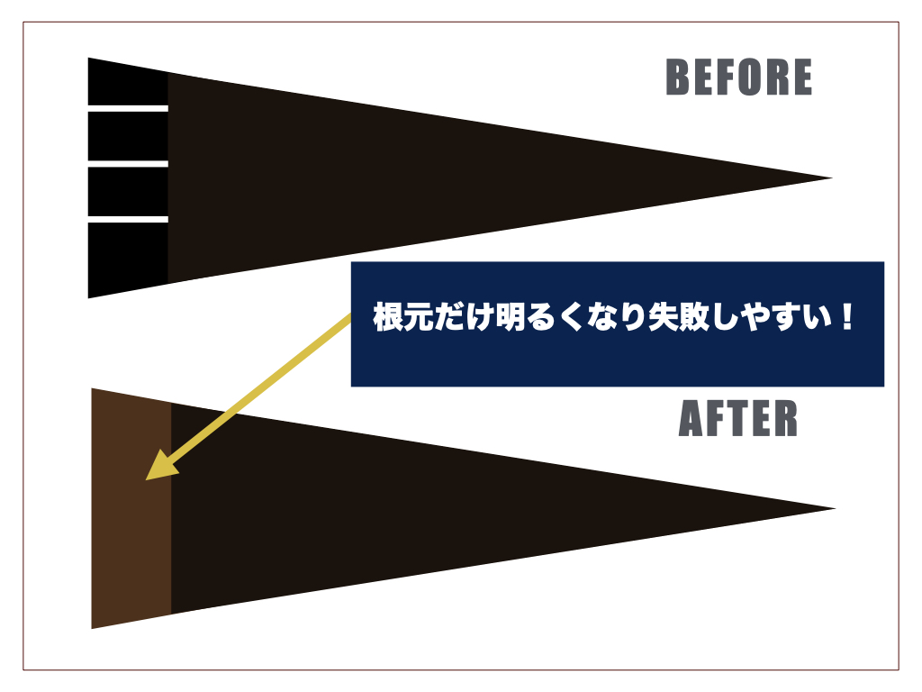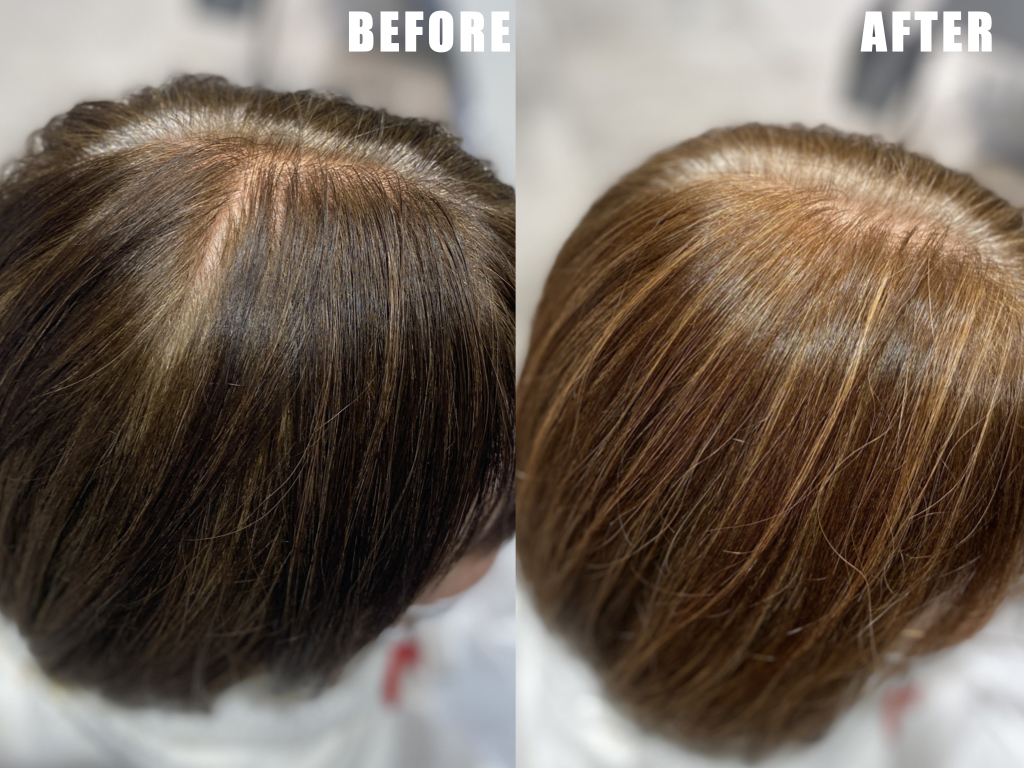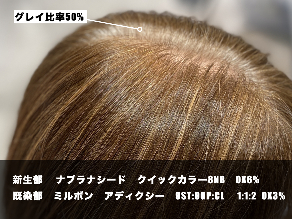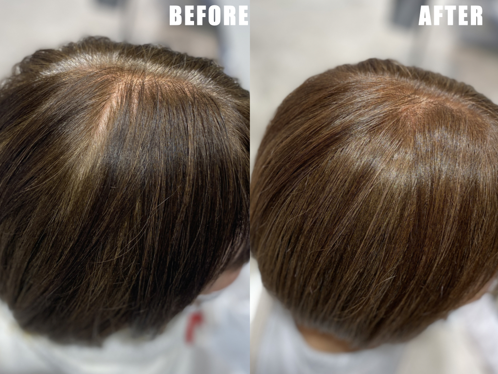 と言うのも、明るい髪色の方がお客様の白髪ストレスを減らせる『可能性』が高いから。