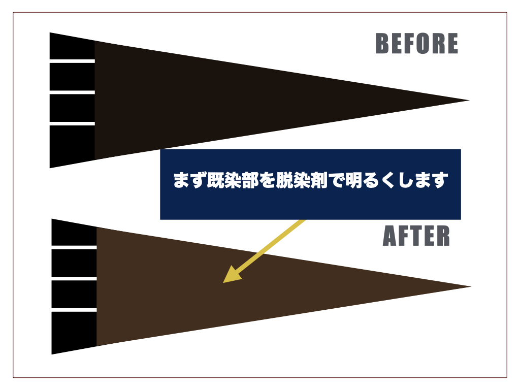 *かなり濃い色素の場合は抜けない場合もあるのでその際はブリーチが必要です