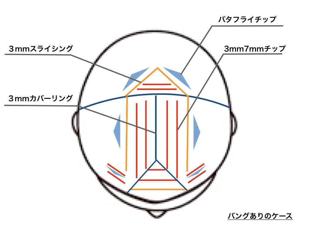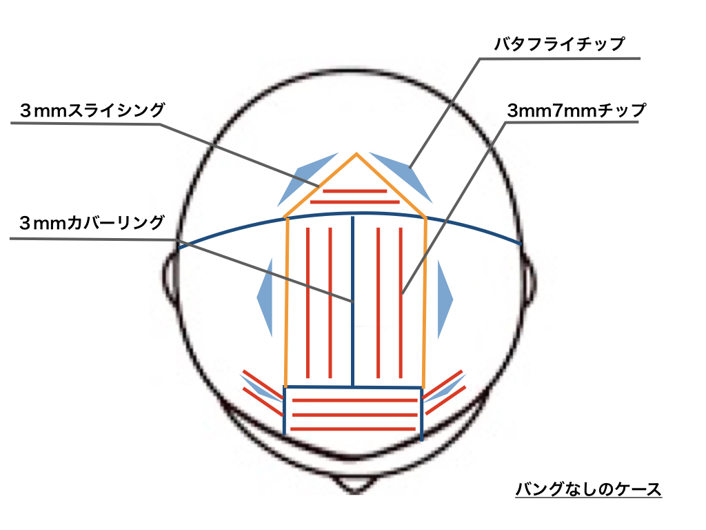 *センターパートの場合の表記・サイドパートの場合は横にズレるだけです!