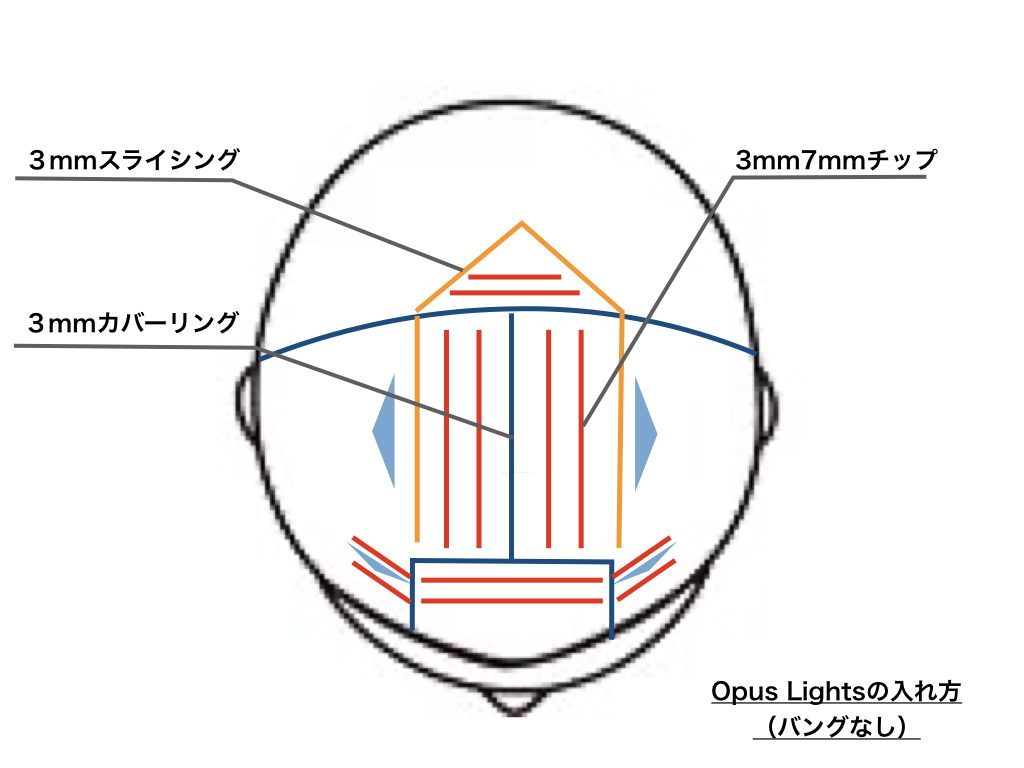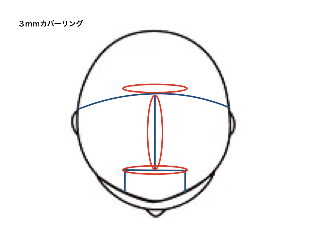 カバーリングとは、ハイライトが表面から出過ぎないように3ミリの髪を残すコト。